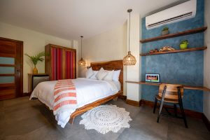 The Madera suite sits poolside and faces the La Bocana surf break. Madera is on the ground floor and is one of five “element” suites on the waterfront side of Balancé. Madera comes with 1 queen bed and a private terrace with a garden. The room has a mini-fridge, tea kettle, high-speed fiber optic internet, a small desk and workstation, a closet / organizer, a secure safe, and a beautiful bathroom. All rooms at Balancé come with hot water showers, lush bedding and linens, and air conditioning, and come stocked with purified drinking water that we keep refilled throughout your stay. Please bring a refillable water bottle such as a hydro flask or Nalgene.