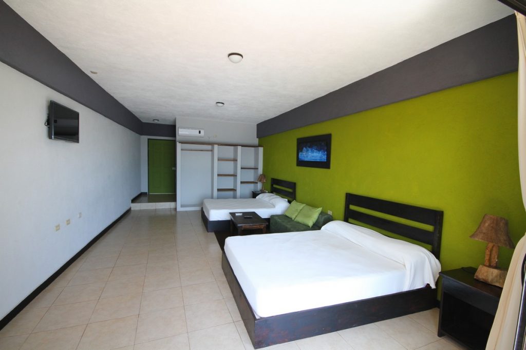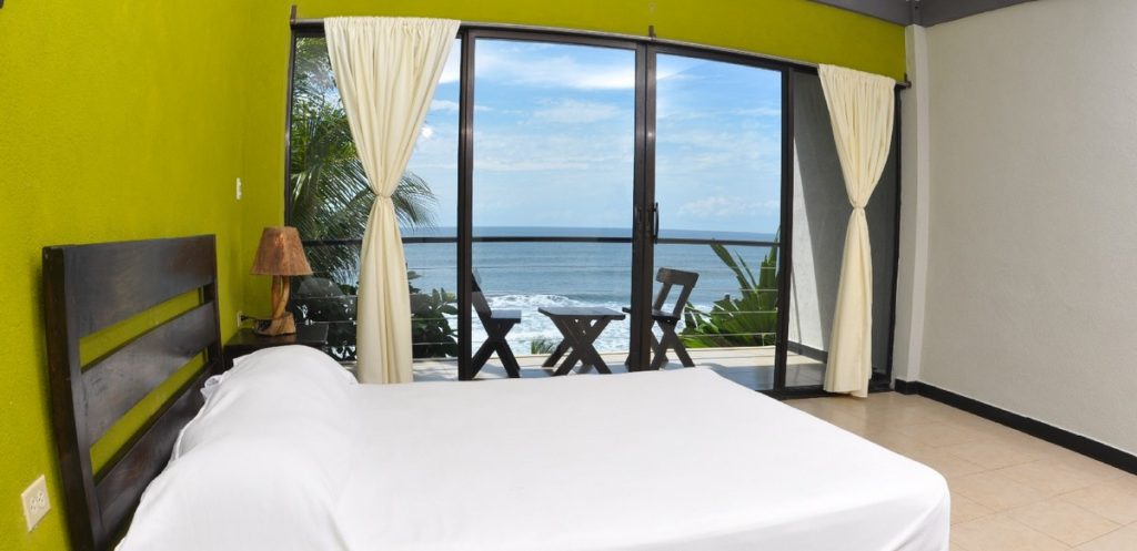 The Oceanfront suites each come with A/C, cable TV, wi-fi internet, large spacious private bathrooms with hot water, a mini sofa, and a private terrace view out over the ocean at Playa El Tunco. From Hotel Tekuani Kal you have the great waves of Playa El Tunco / Sunzal within walking distance. The restaurant and infinity pool also have great panoramic views out over the surf. This is one of our best overall locations, and one of our top recommendations. A maximum of 4 adults are permitted.
